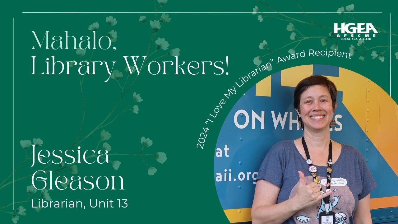 On this Library Workers Day, we are celebrating one of our local superheroes! Since 2006, Wailuku Bookmobile Librarian and Unit 13 member Jessica Gleason has been spreading the love of […]